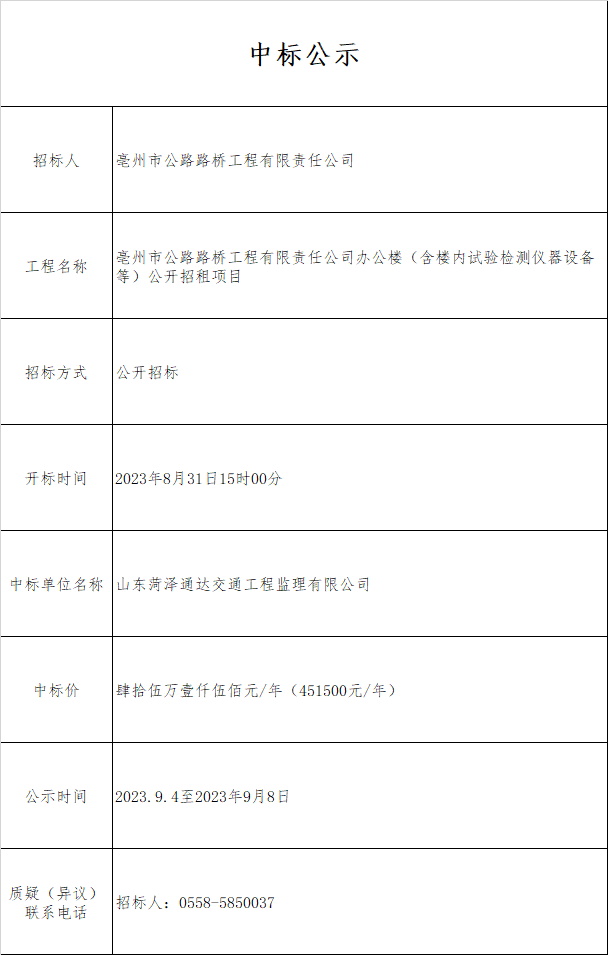 中标公示